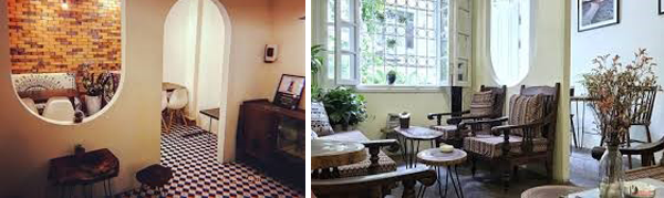 Quán nằm ngay tầng 1 ở một khách sạn trên con phố Nguyễn Trường Tộ với thiết kế cổ điển và màu sắc quán chủ đạo là gam màu nóng.